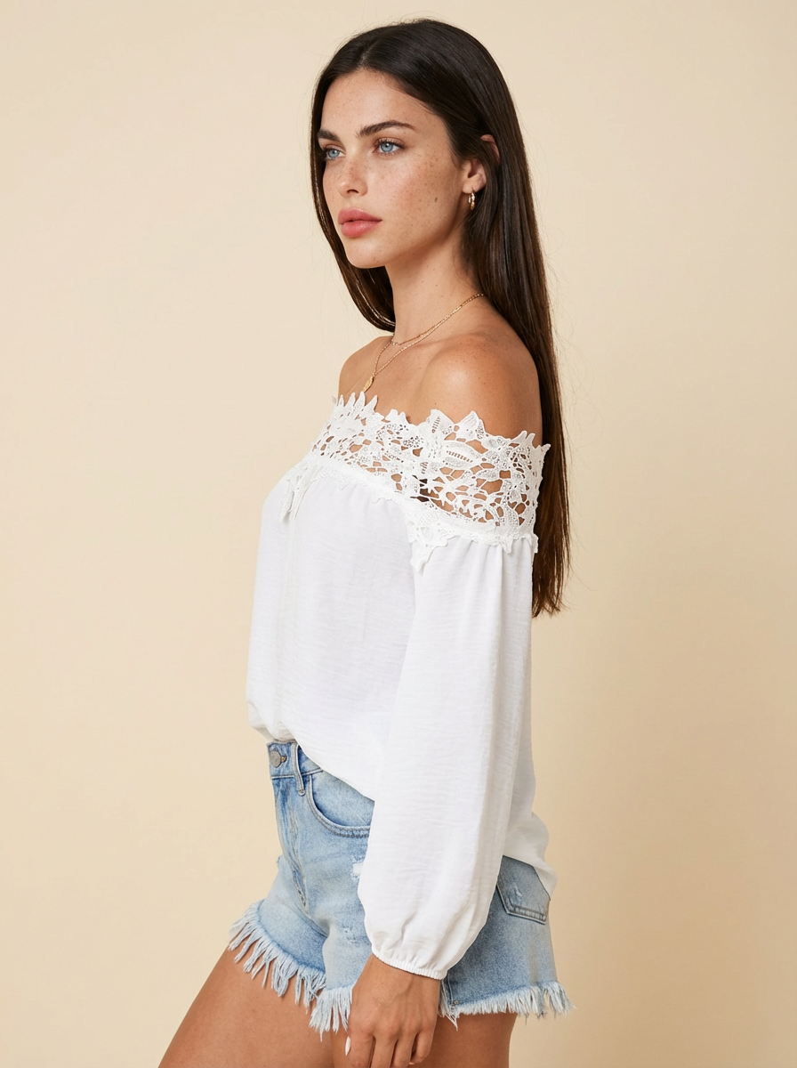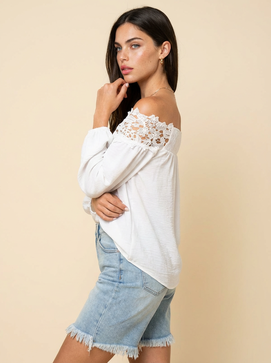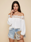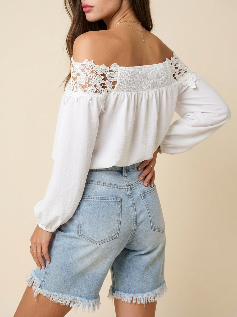 Lace Trim Textured Off-Shoulder Blouse