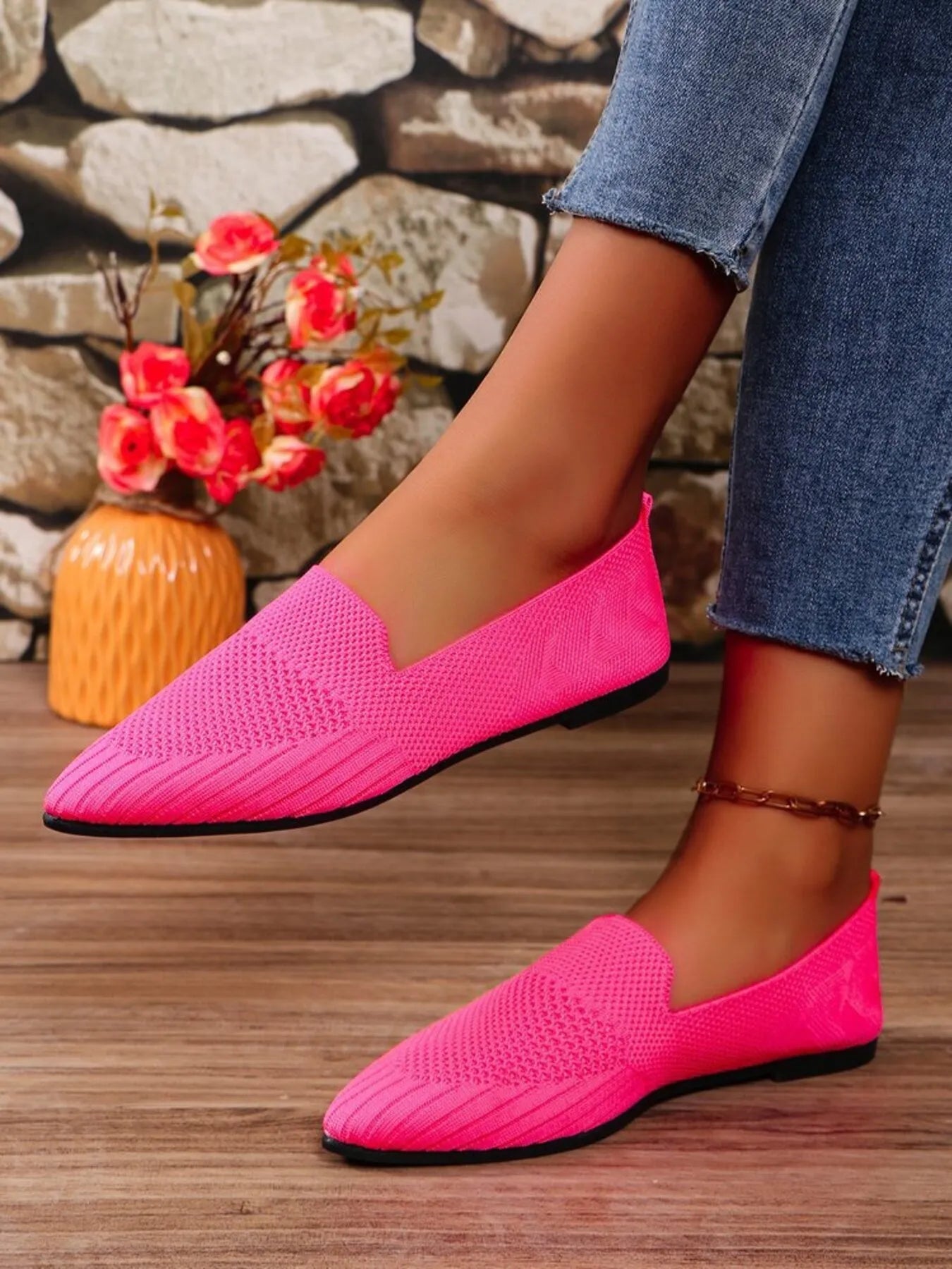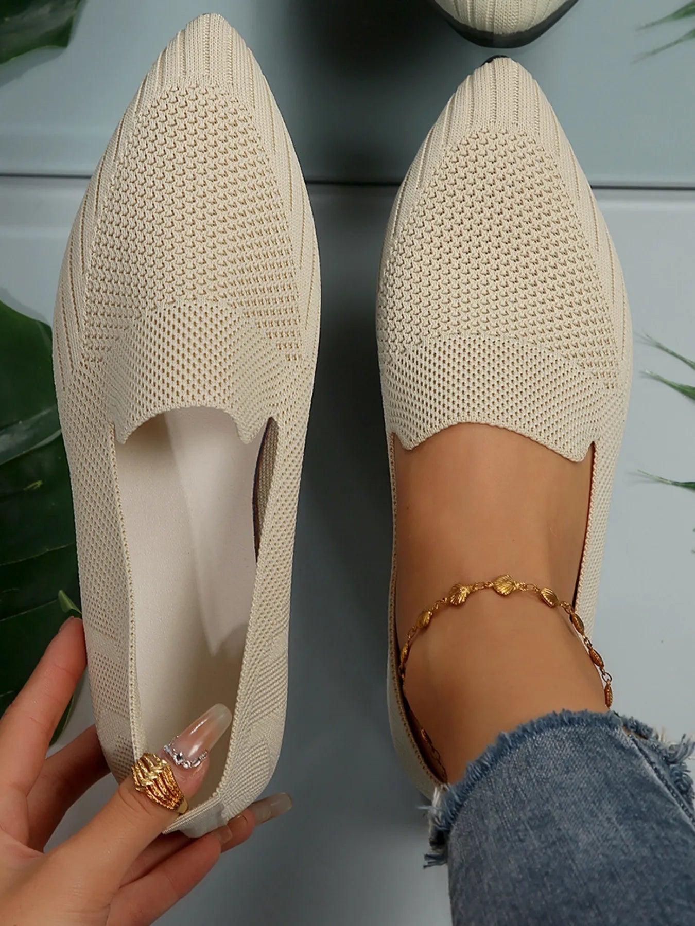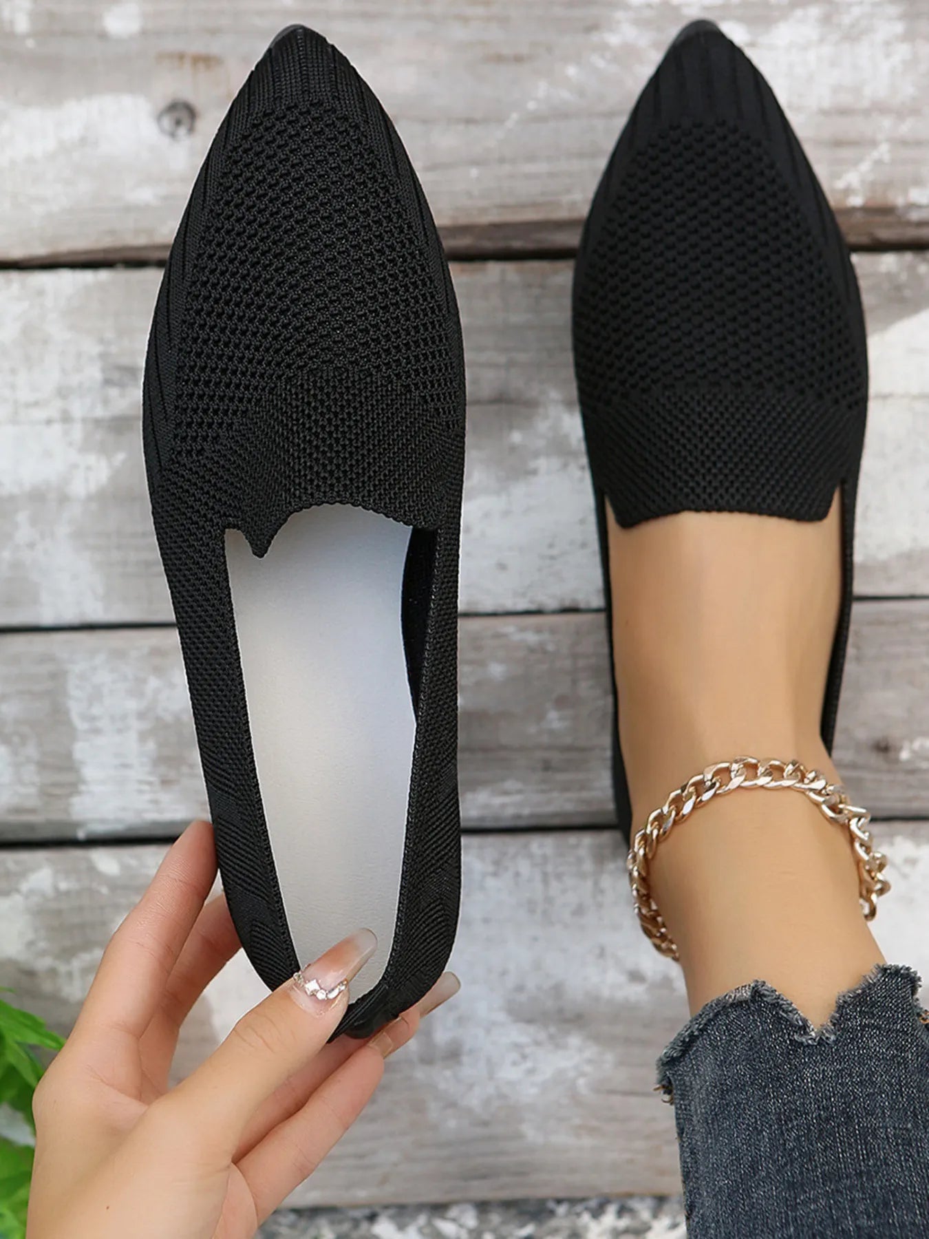 Stephanie Mesh Point Toe Flat Slip-Ons