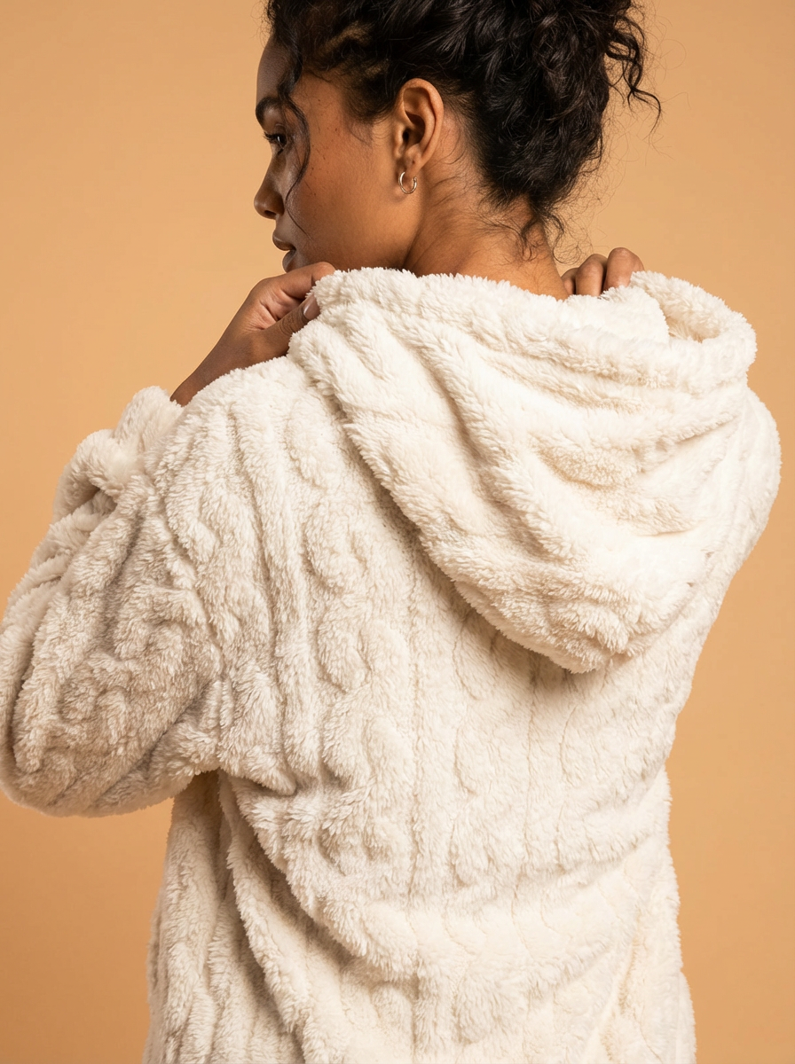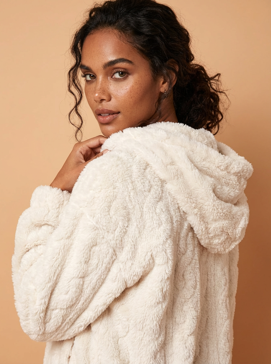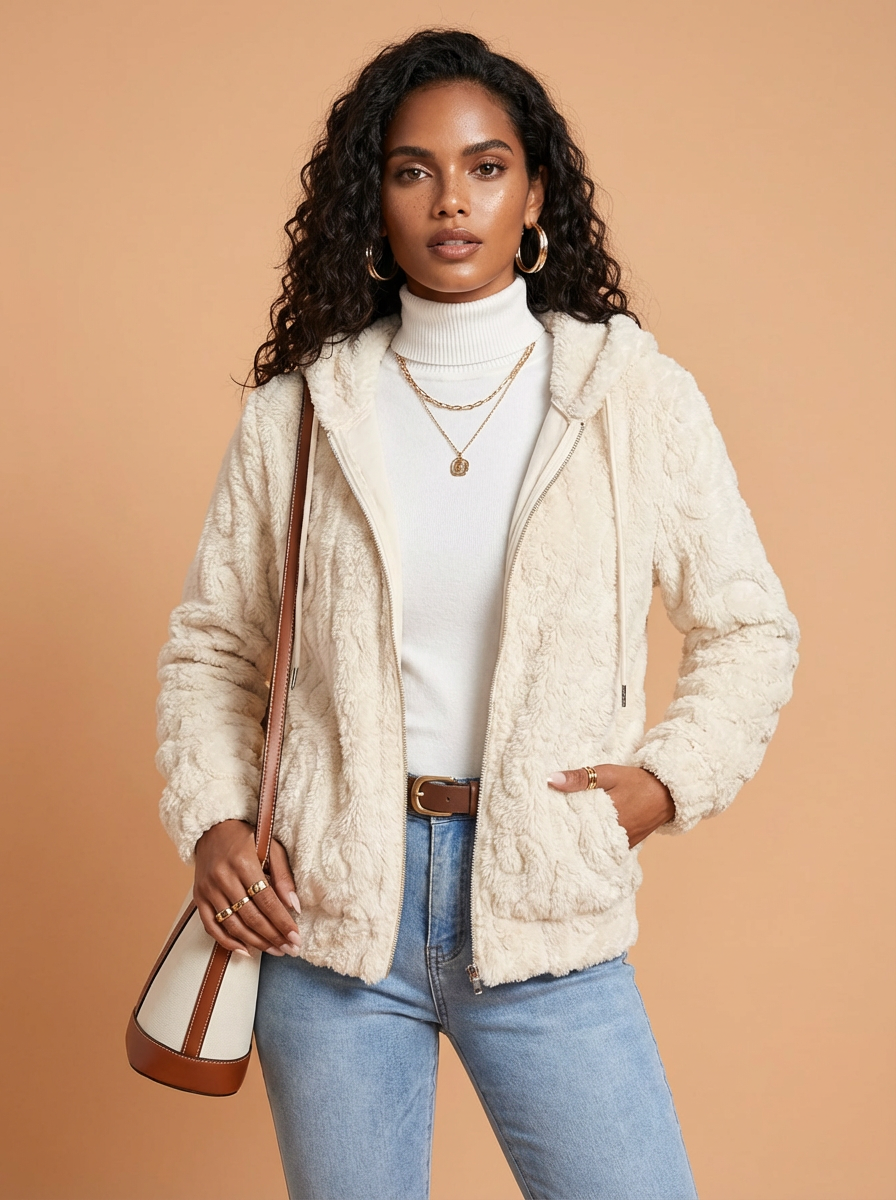 Drawstring Zip-Up Fleece Hooded Outerwear