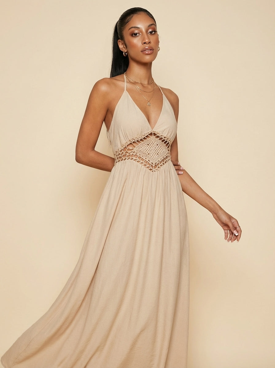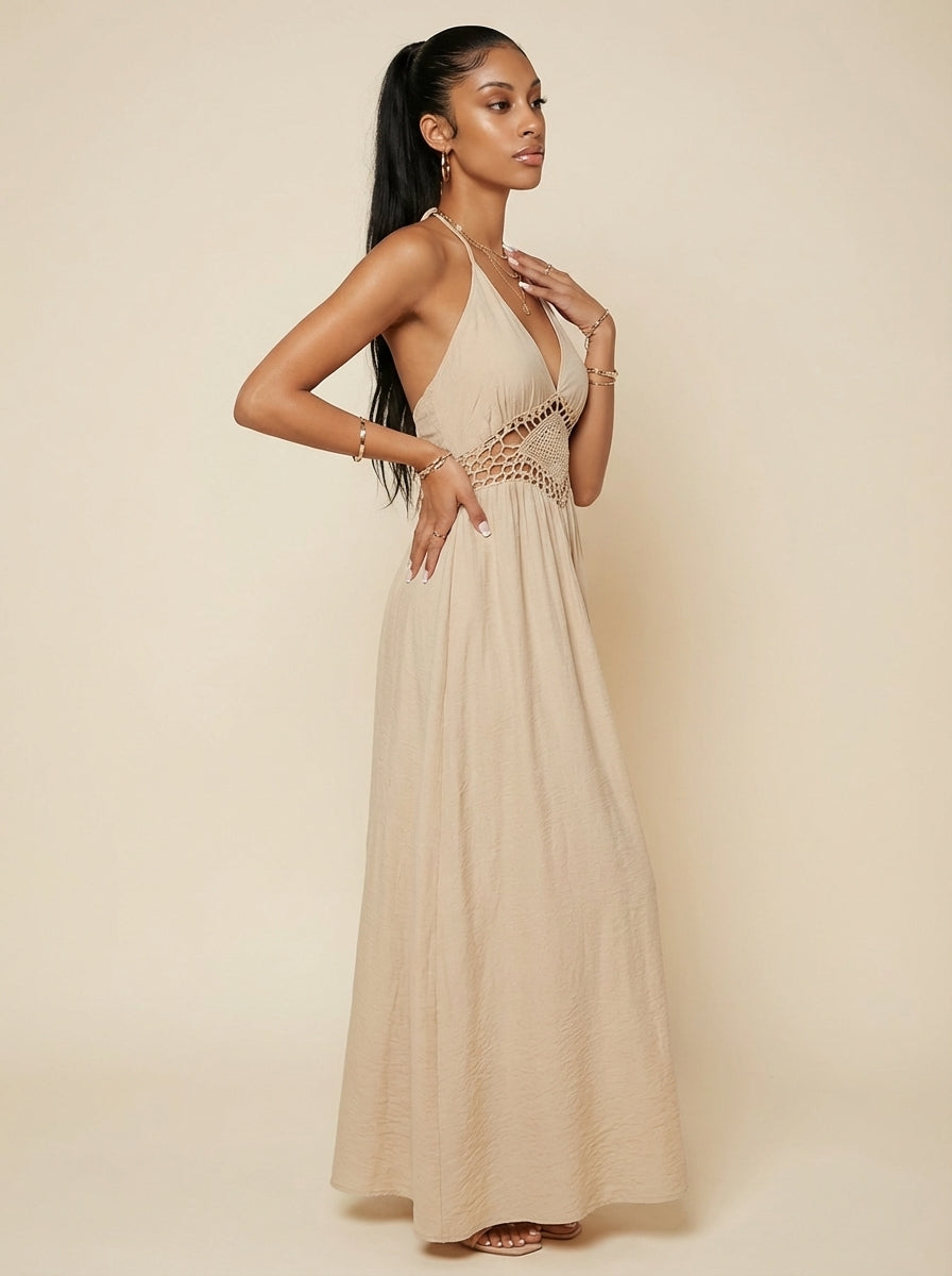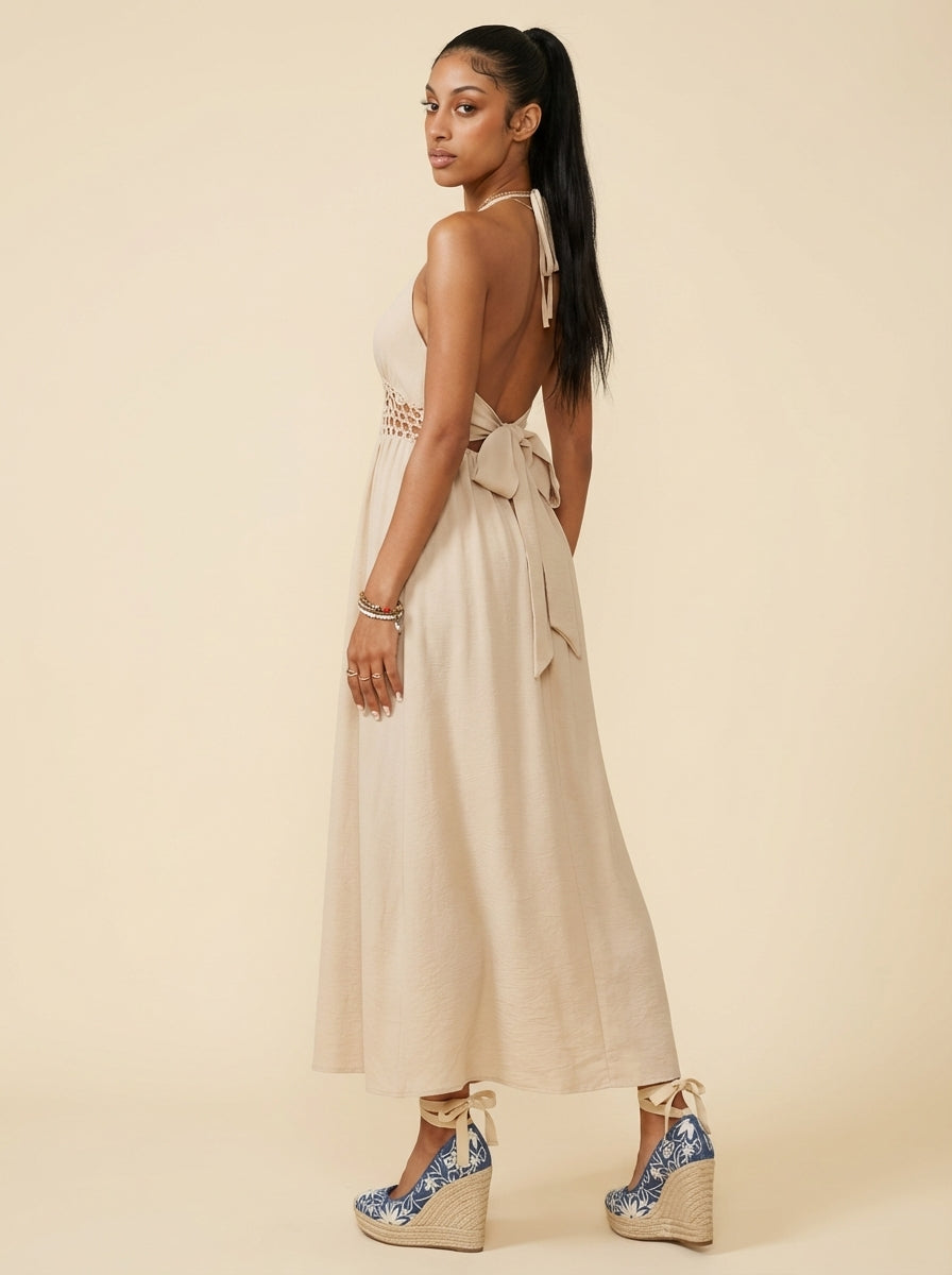 Aria Backless Halter Neck Maxi Dress