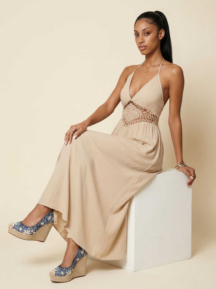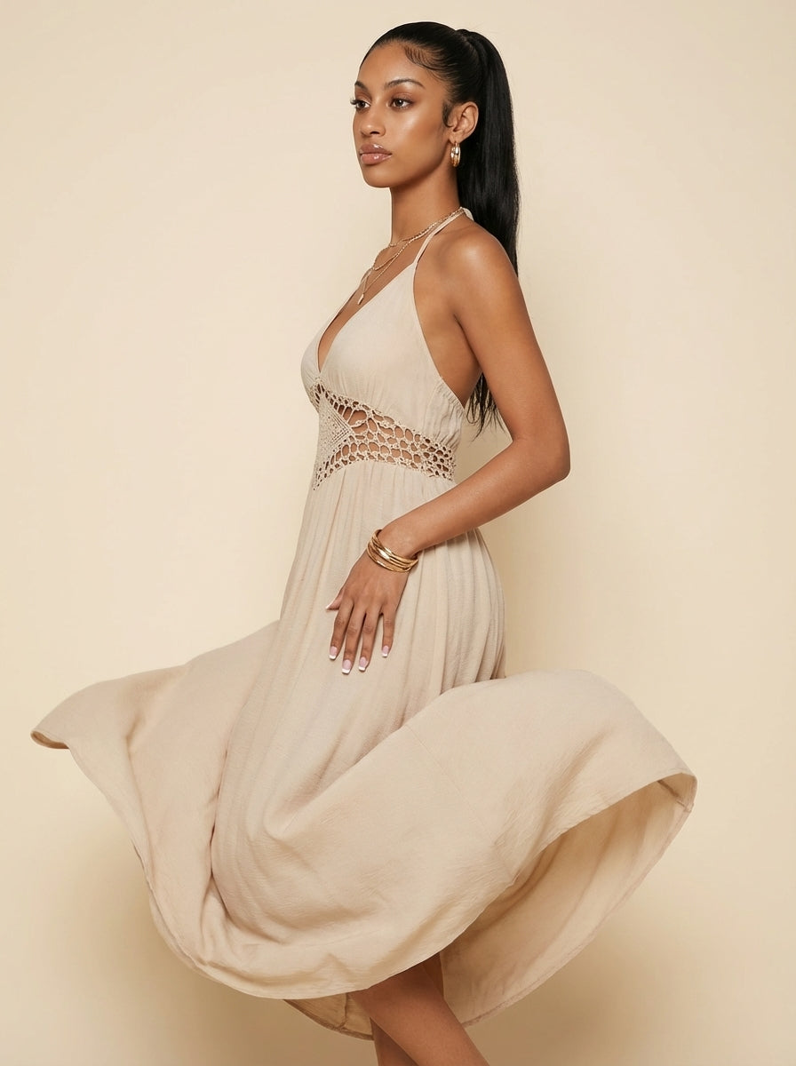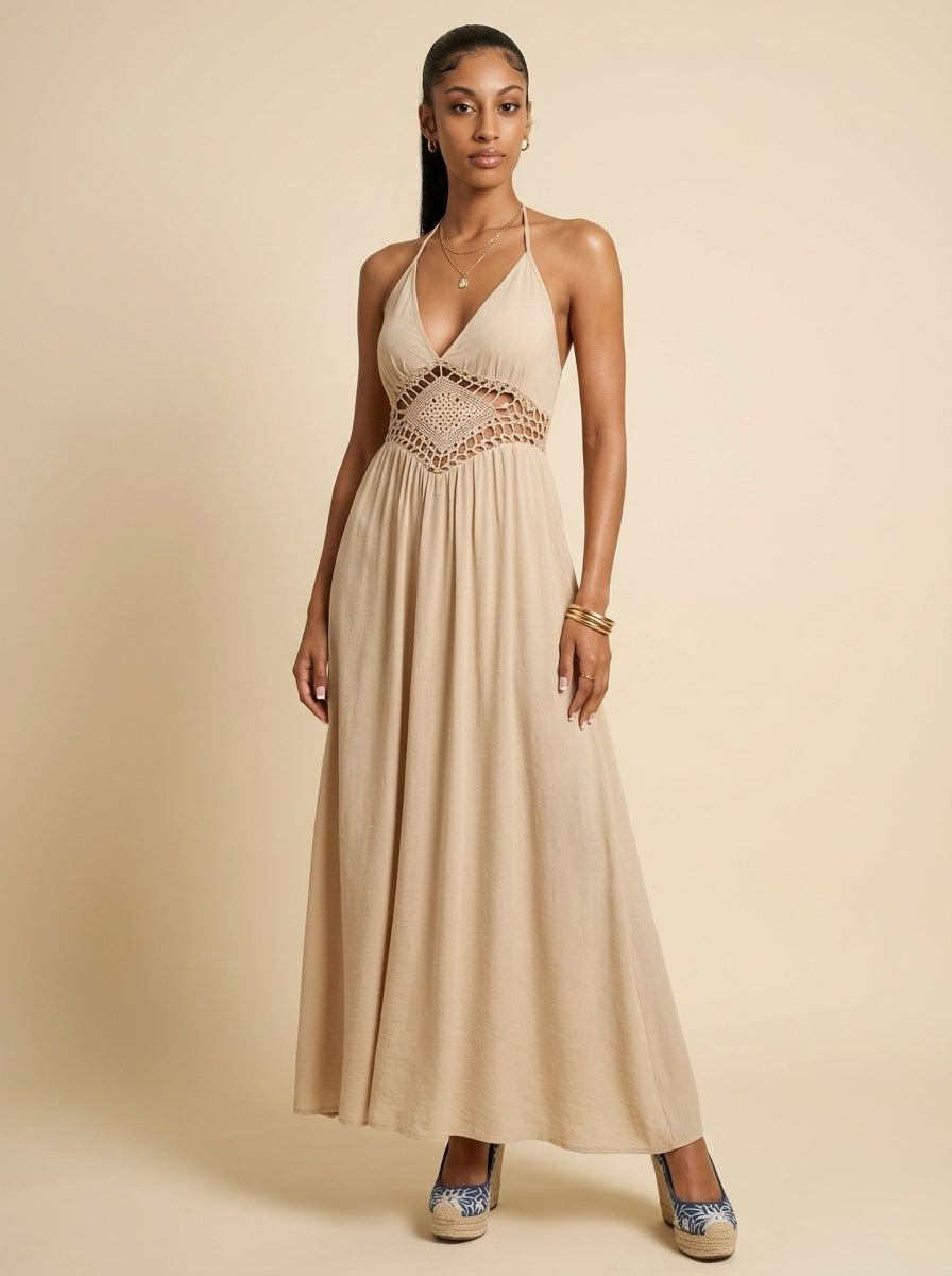 Aria Backless Halter Neck Maxi Dress