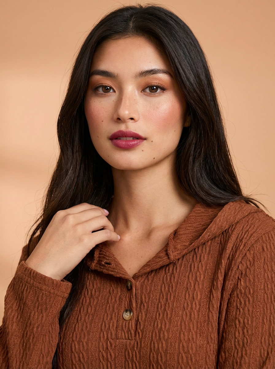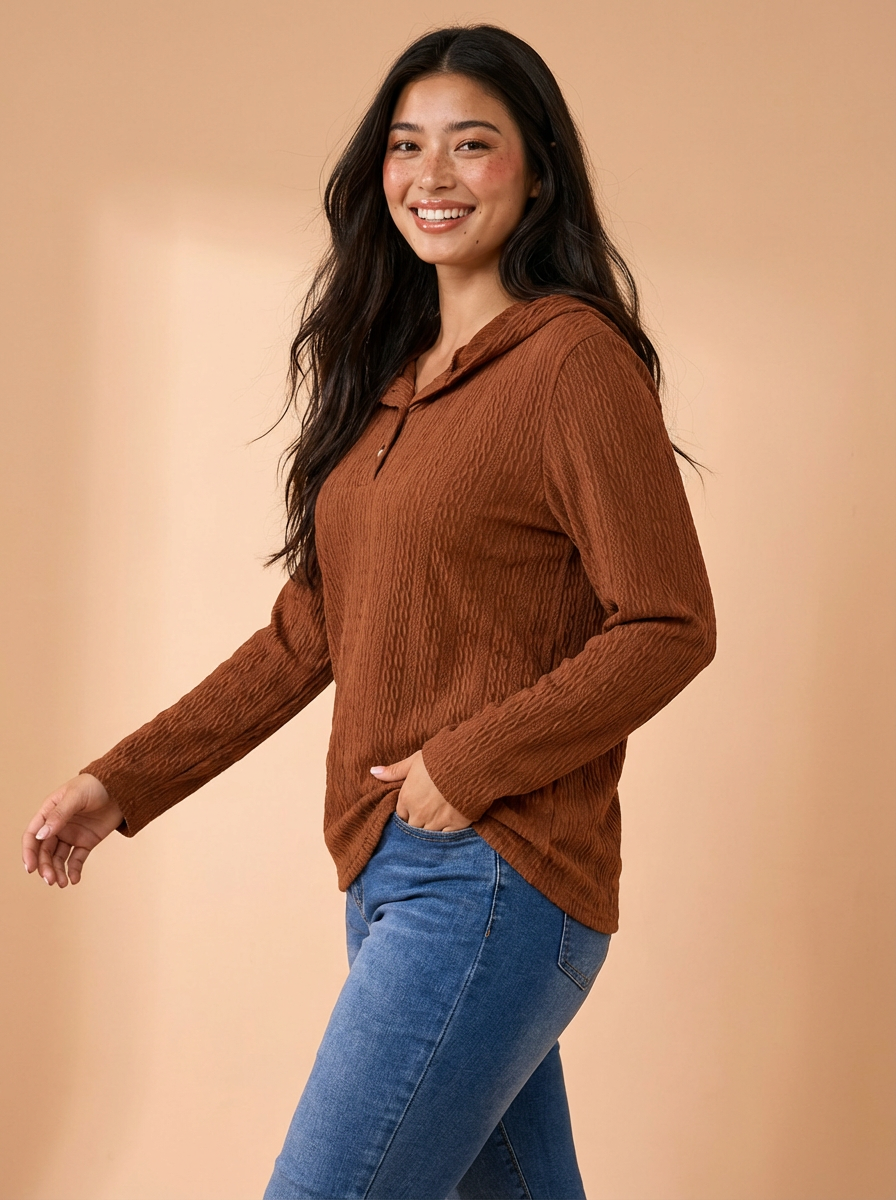 Cozy Lounge Brown Long Sleeve Hoodie Plus Size