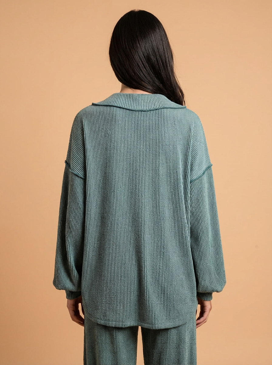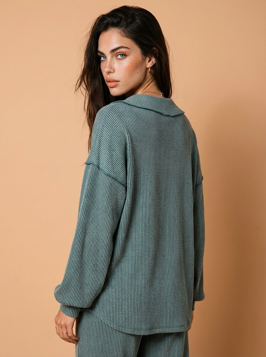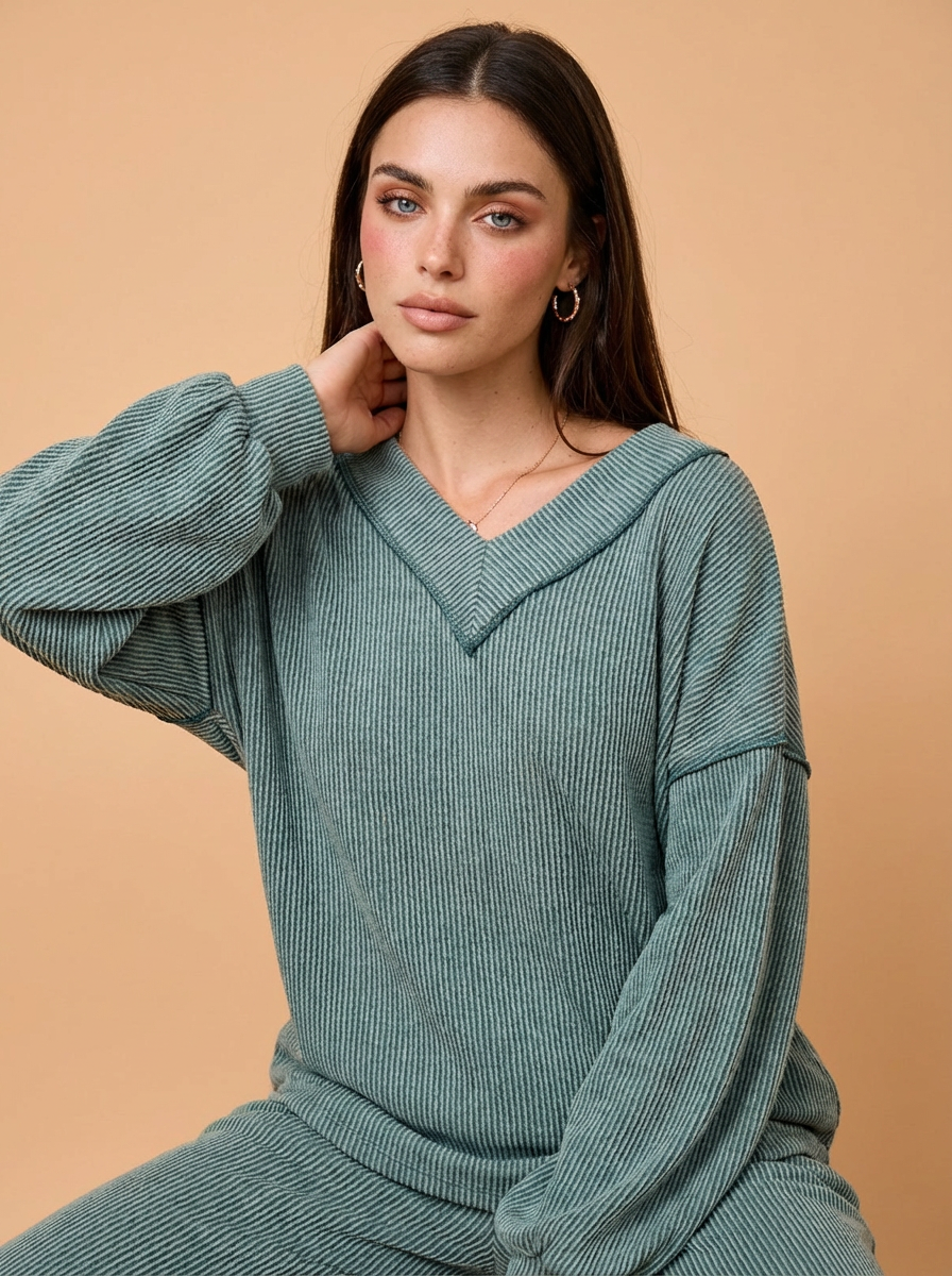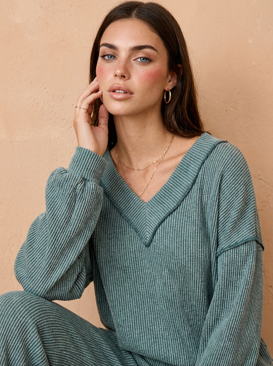 Hailey Cord Rib V-Neck Top and Pants Set