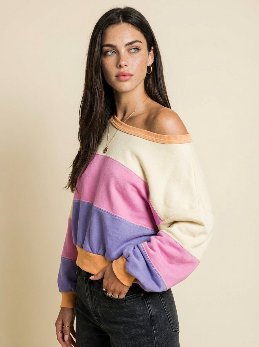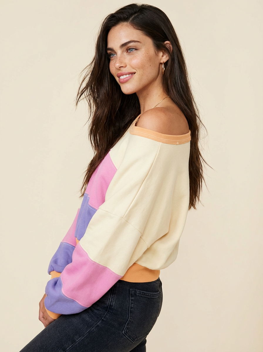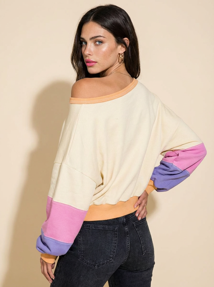 Joy Color Block Drop Shoulder Sweatshirt