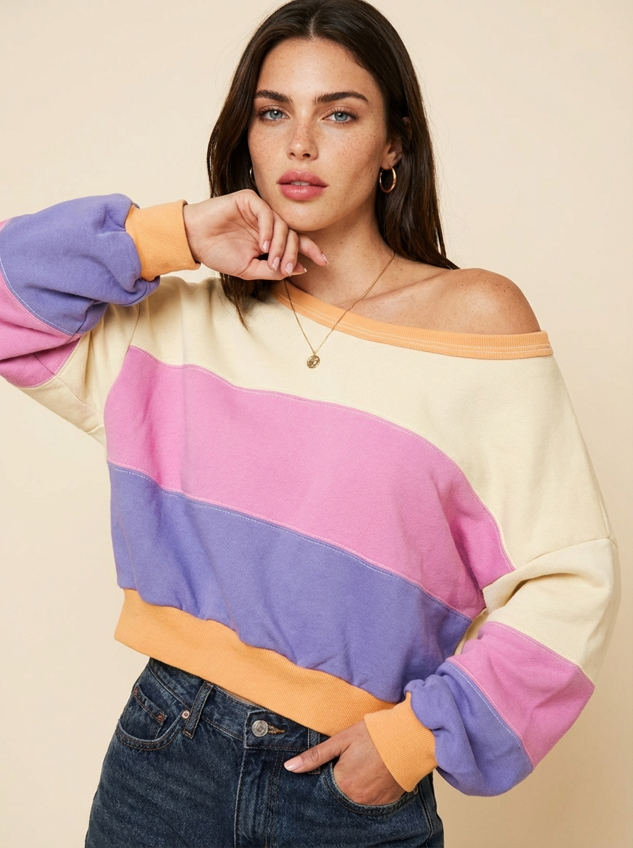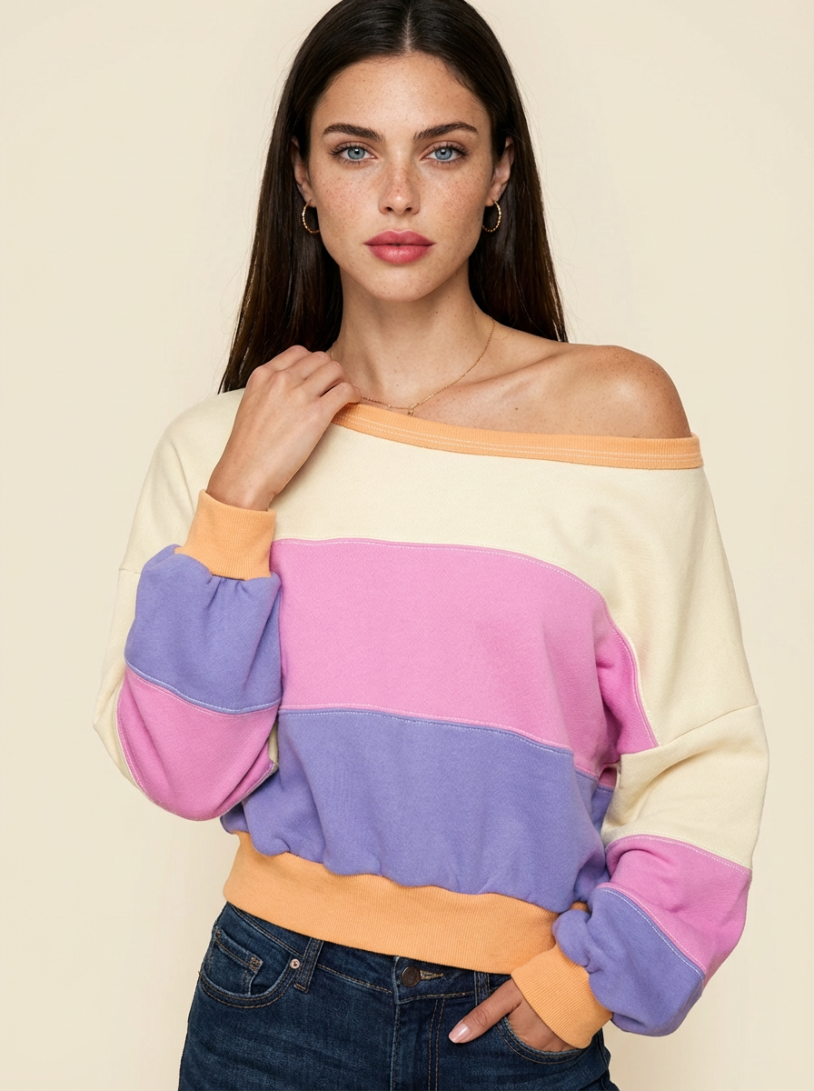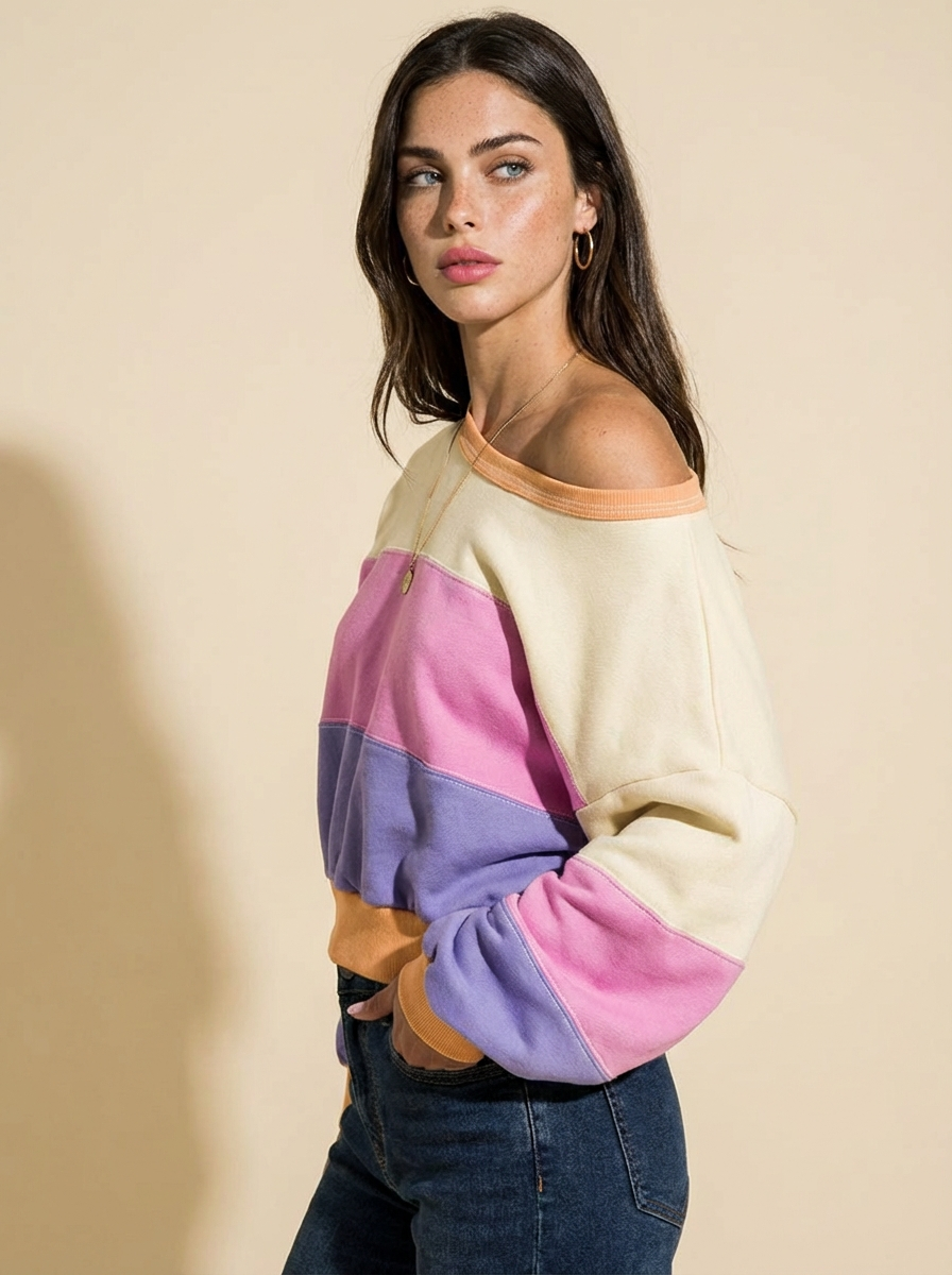 Joy Color Block Drop Shoulder Sweatshirt