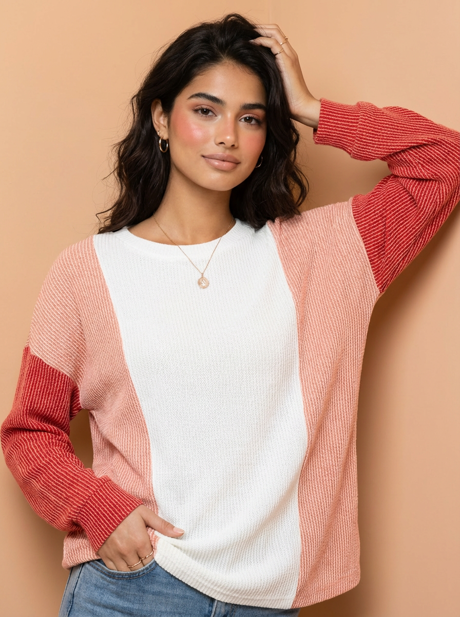 Lizzy Texture Contrast Long Sleeve T-Shirt