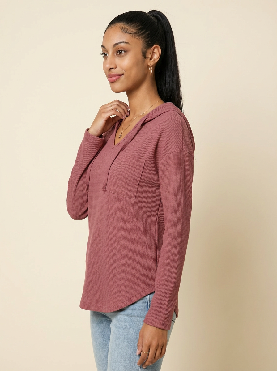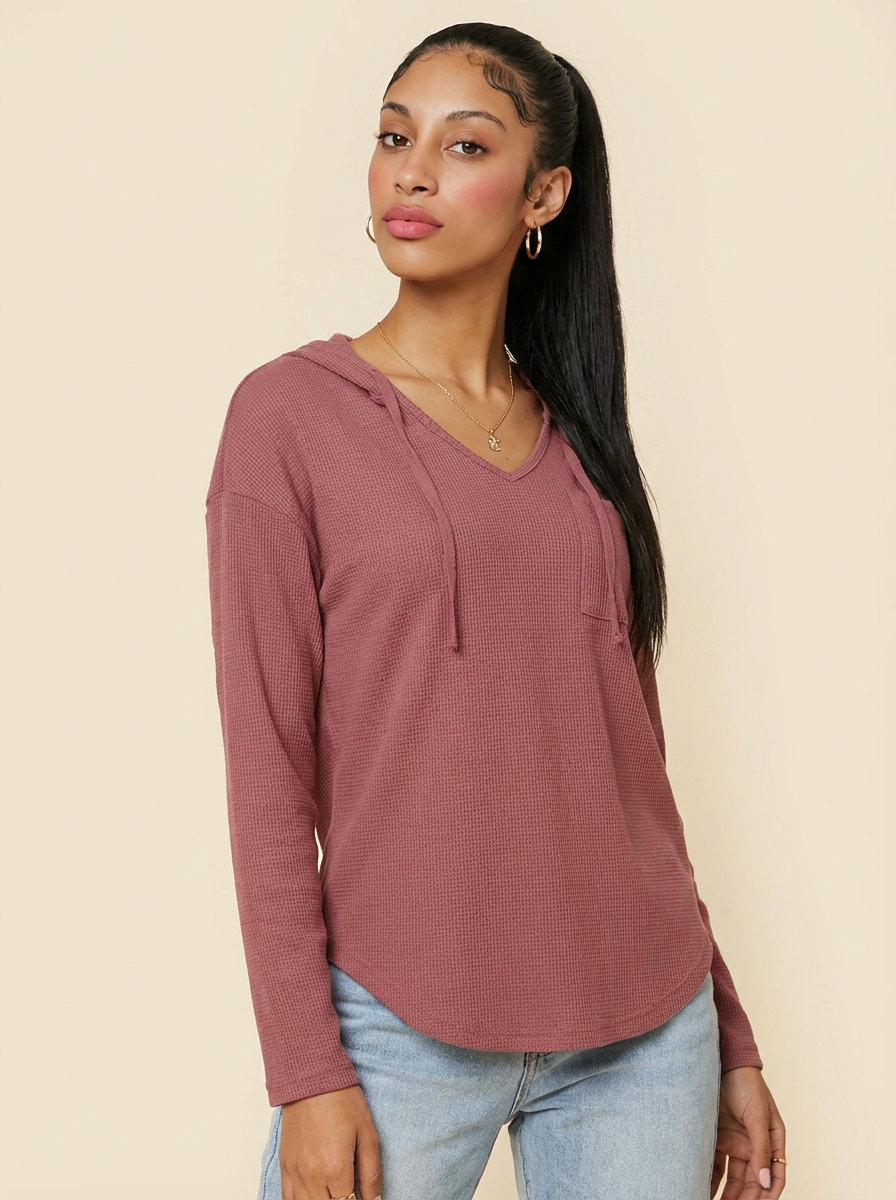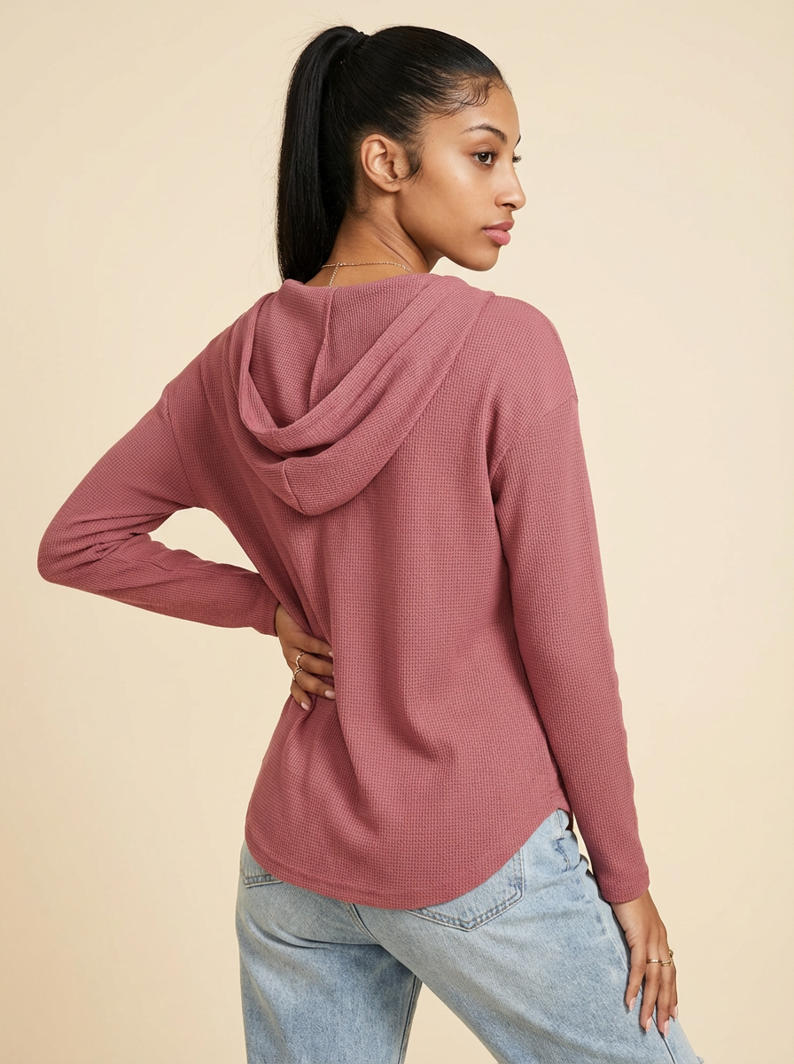 Cecile Waffle Knit Long Sleeve Hooded Top