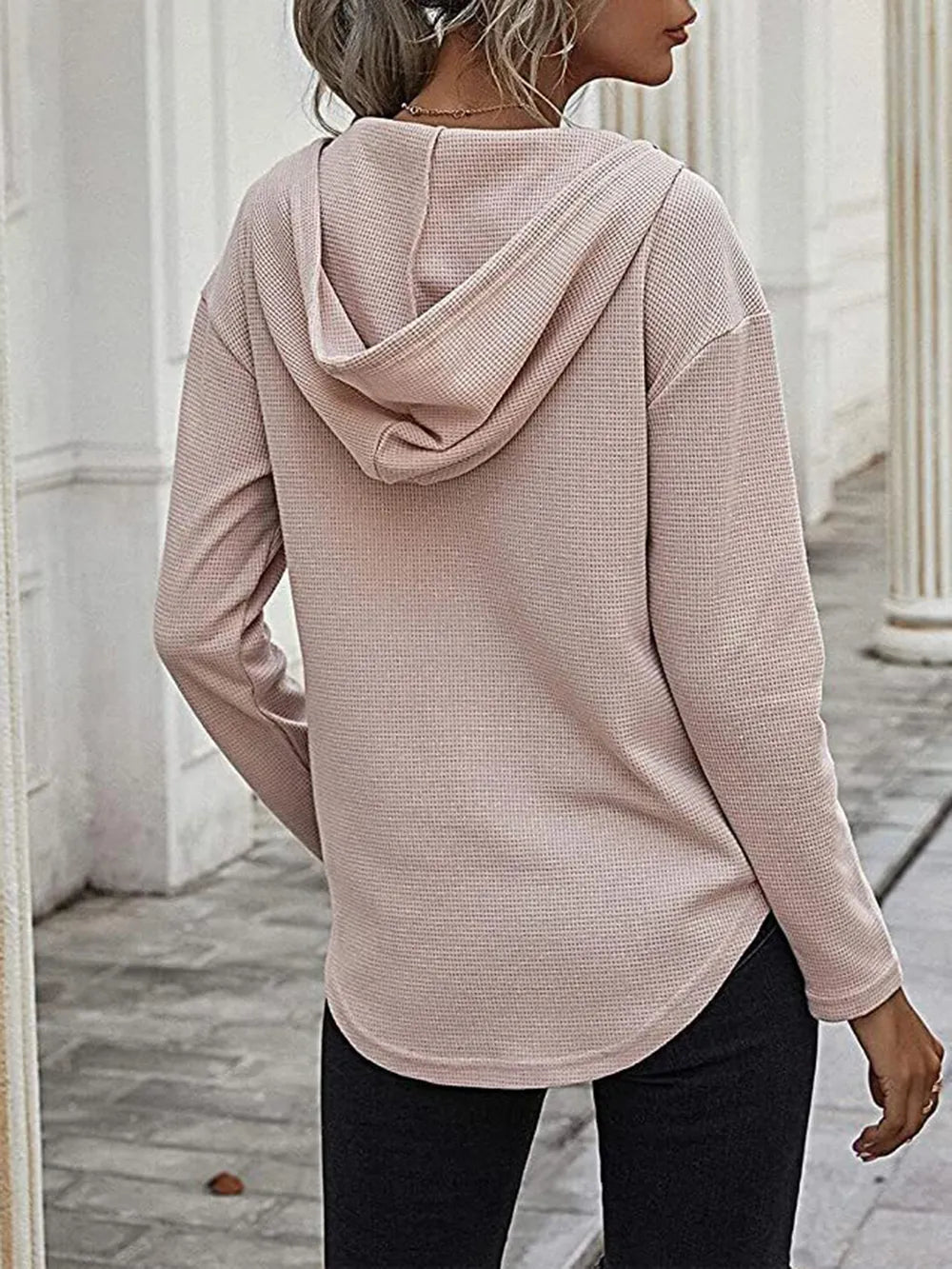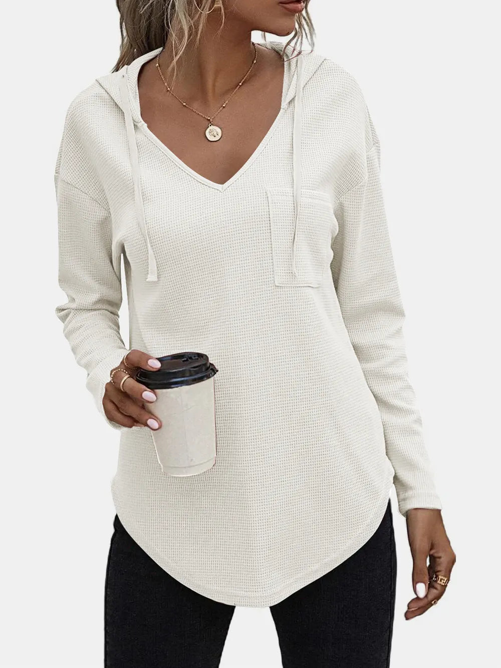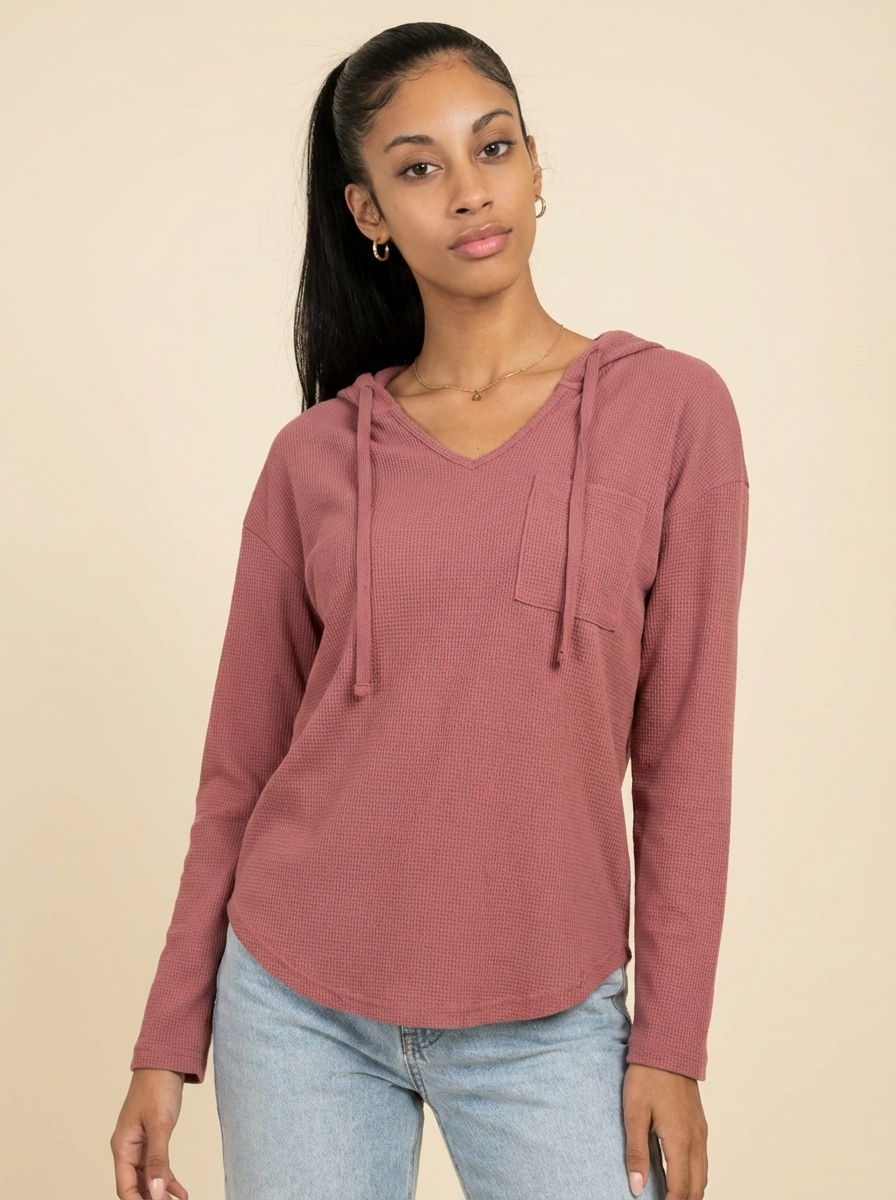 Cecile Waffle Knit Long Sleeve Hooded Top