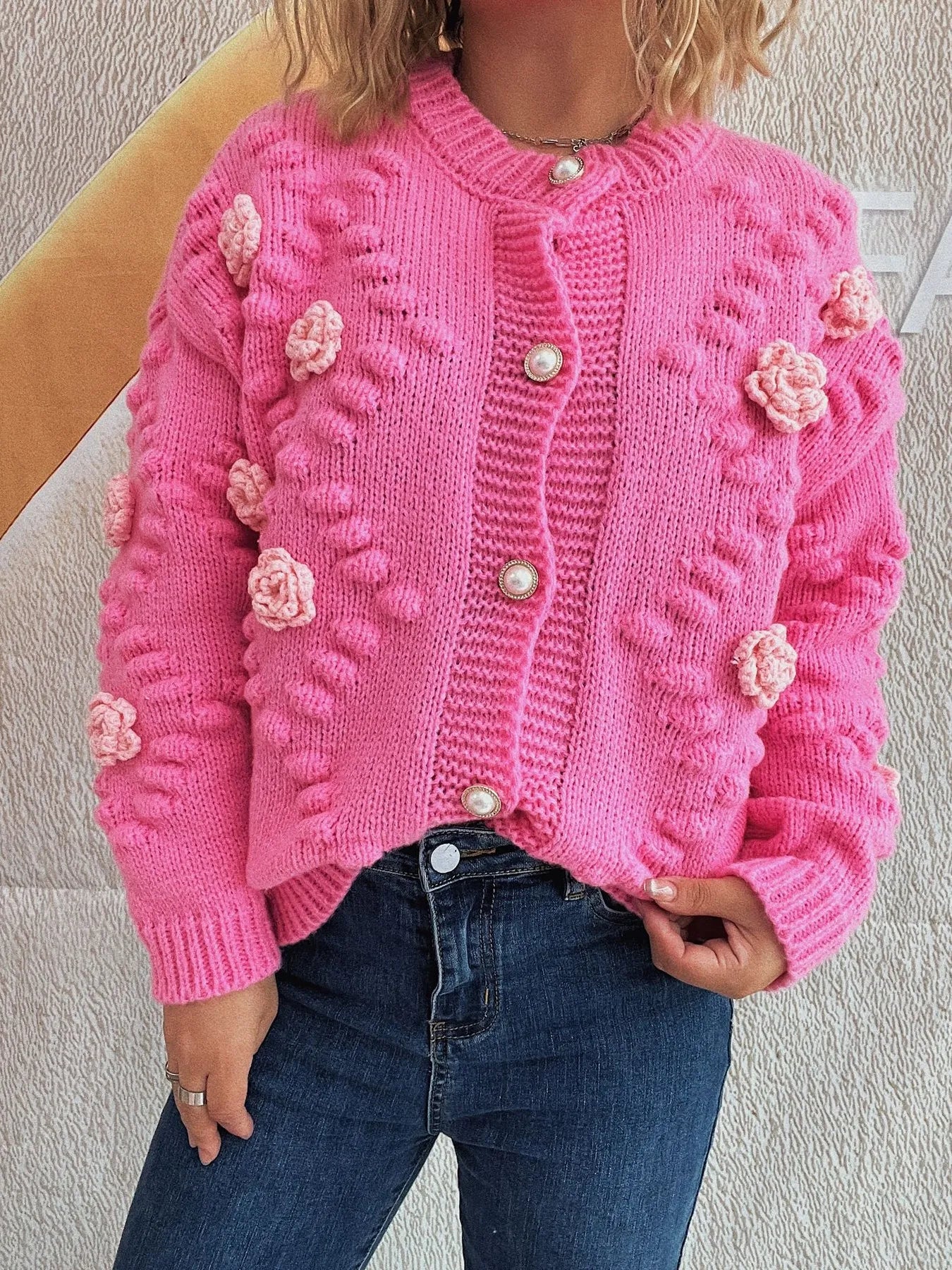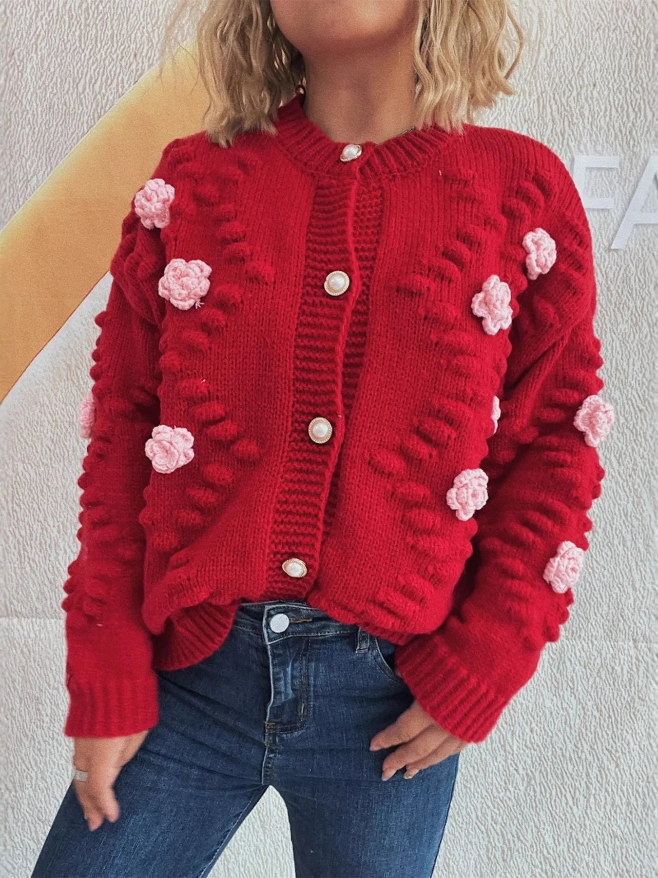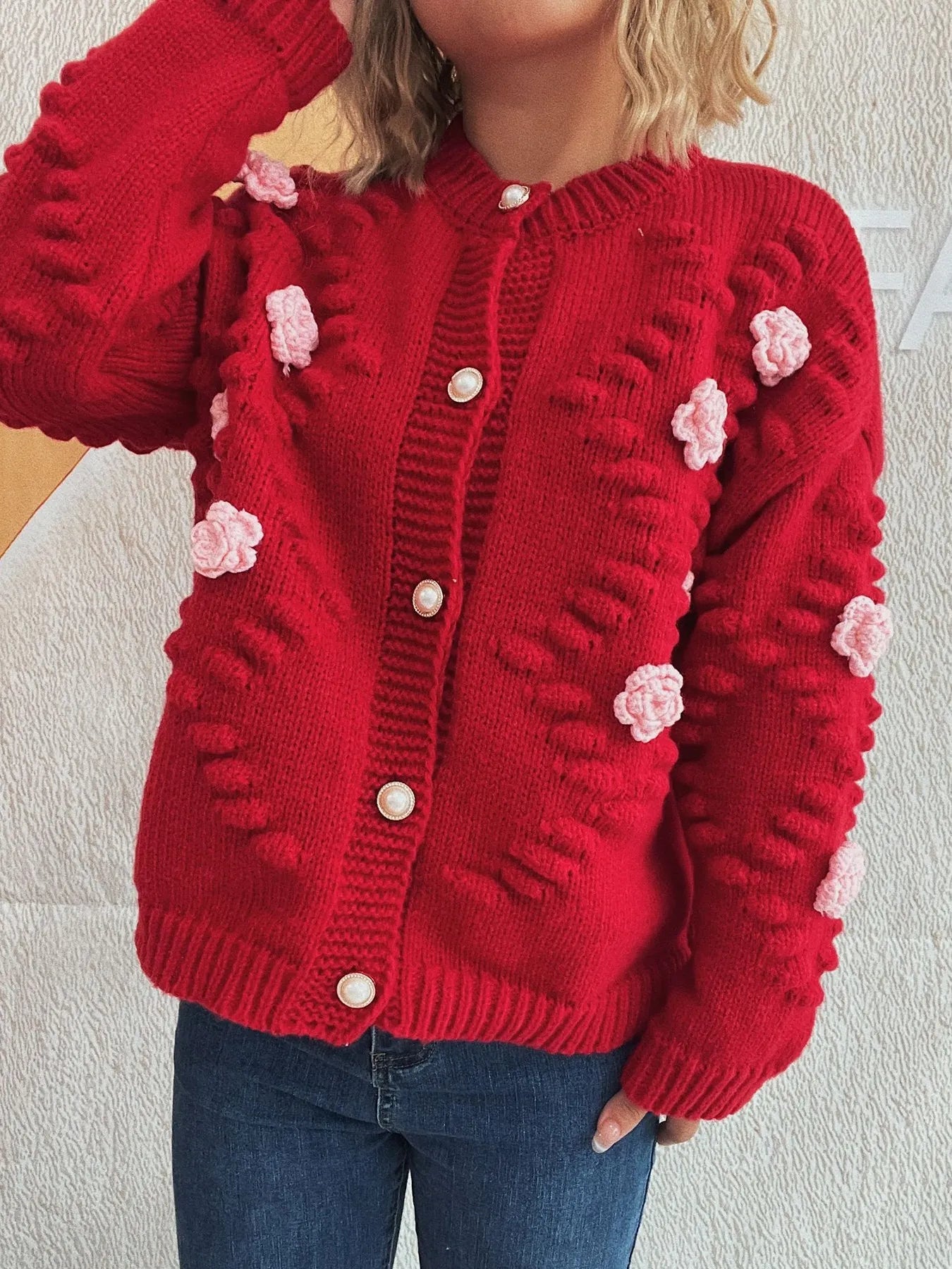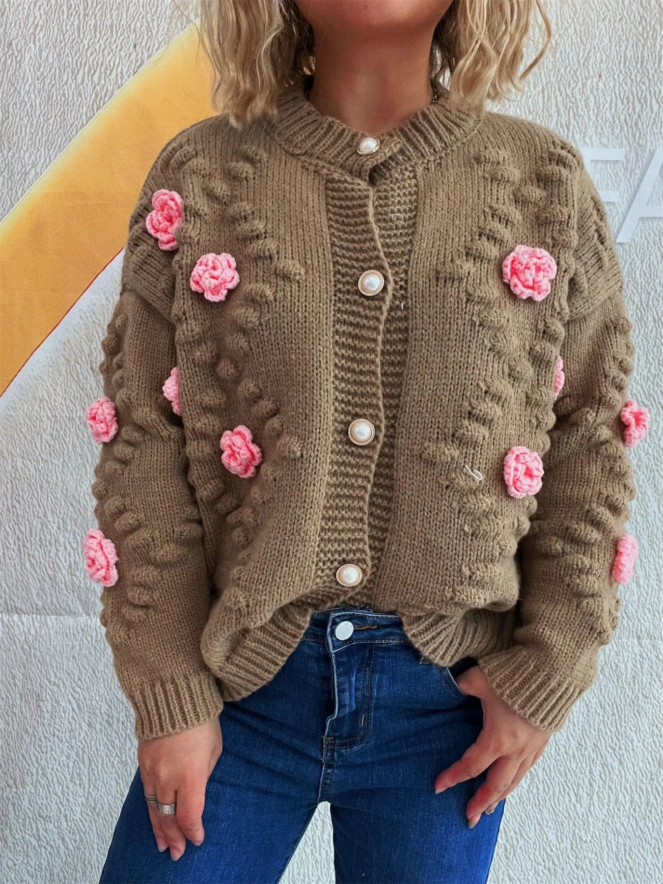 Flower Button Up Long Sleeve Cardigan