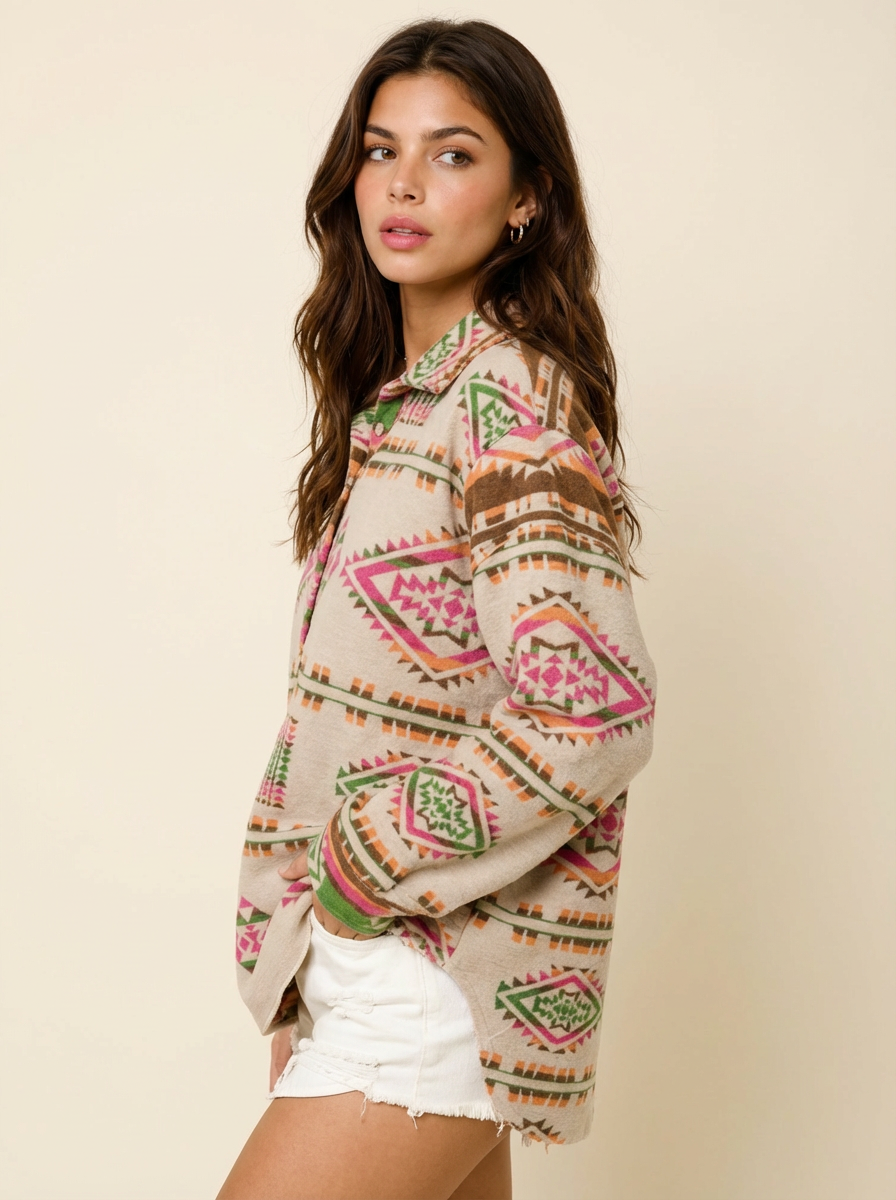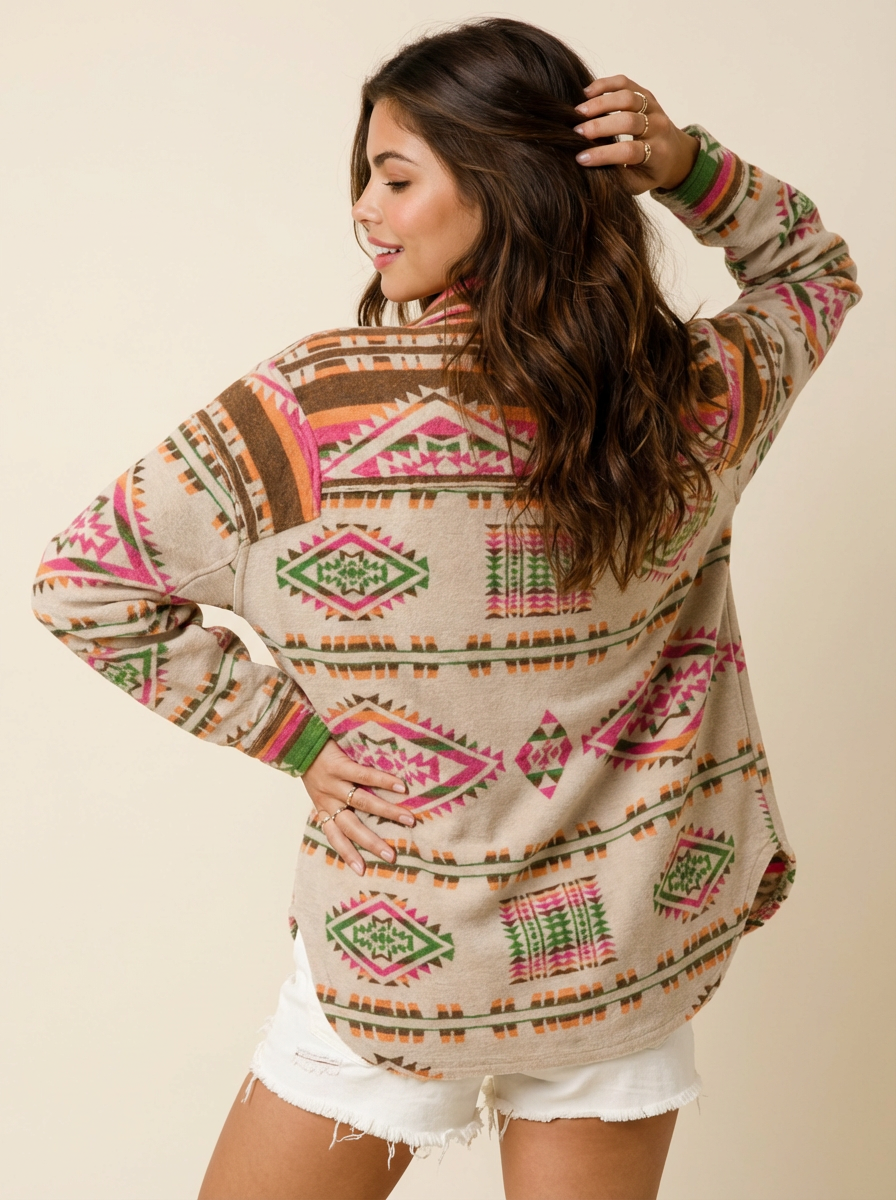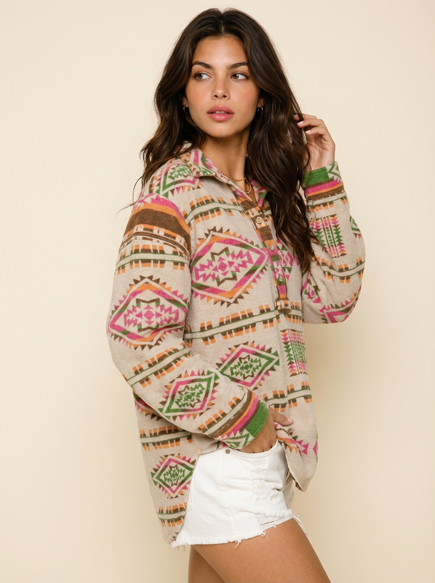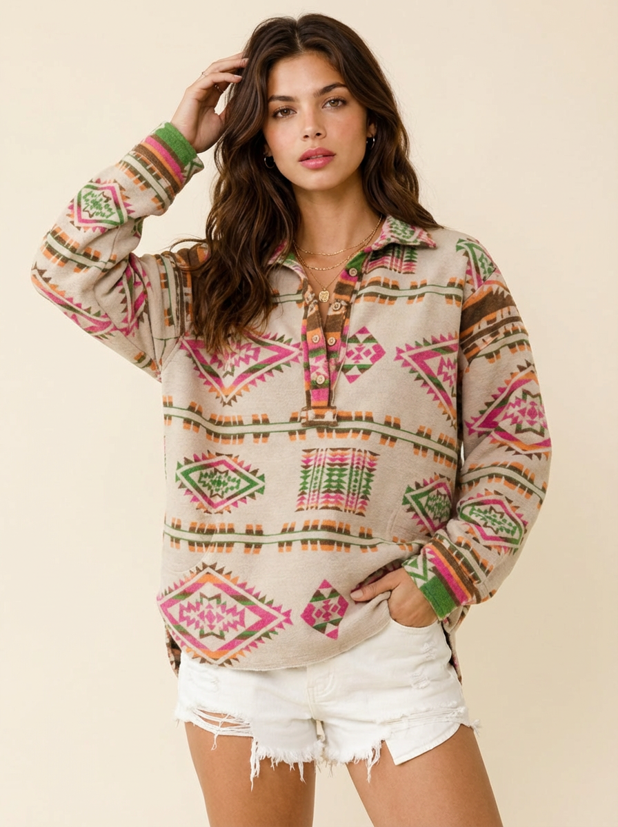 Geometric Half Button Long Sleeve Sweatshirt