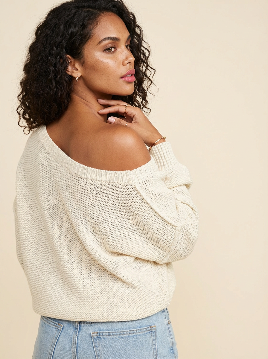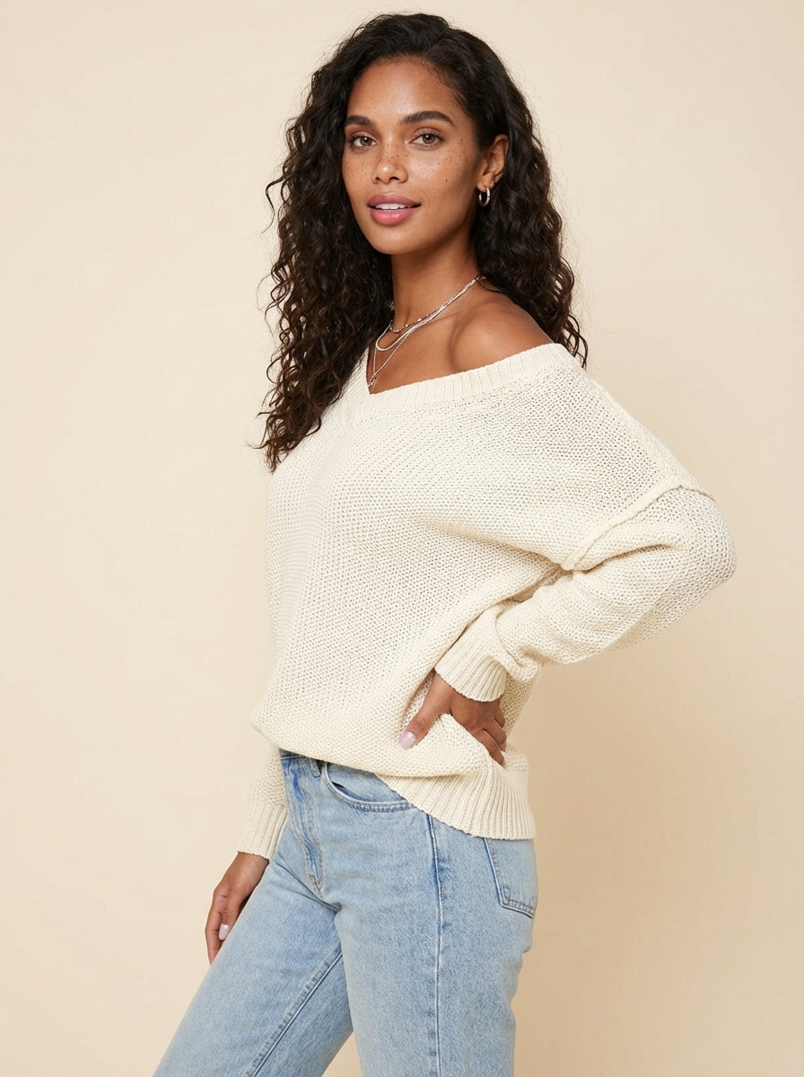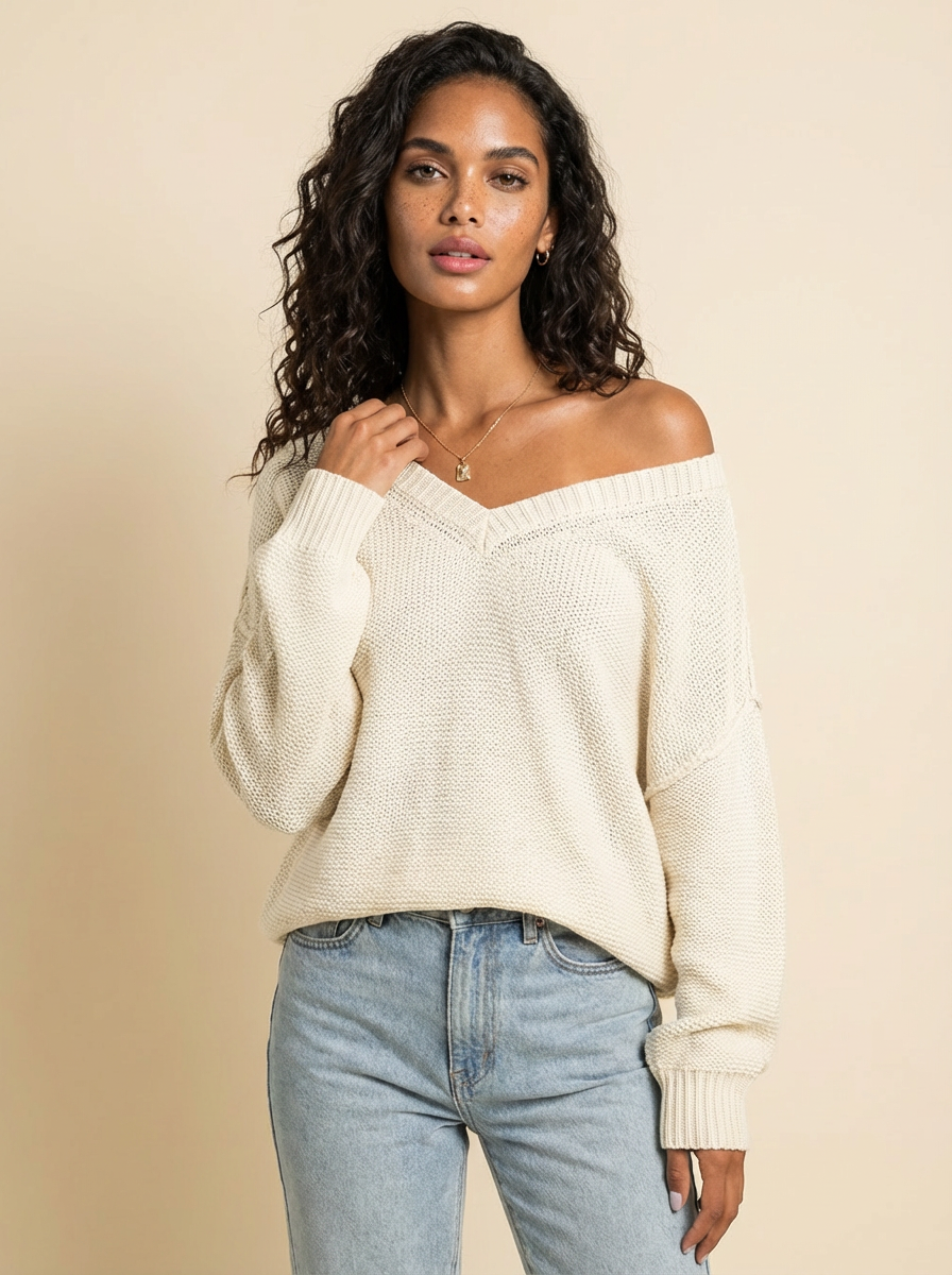 V-Neck Ribbed Dropped Shoulder Knit Top